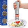 - NOT JUST GOOD-LOOKING: Cute, and also built better! Your new set of 2 empty rustic salt and pepper shakers and steel holder are made of durable, food-grade glass and steel. Stainless steel lids twist on and off easily and deliver a consistent pour of salt or pepper.
