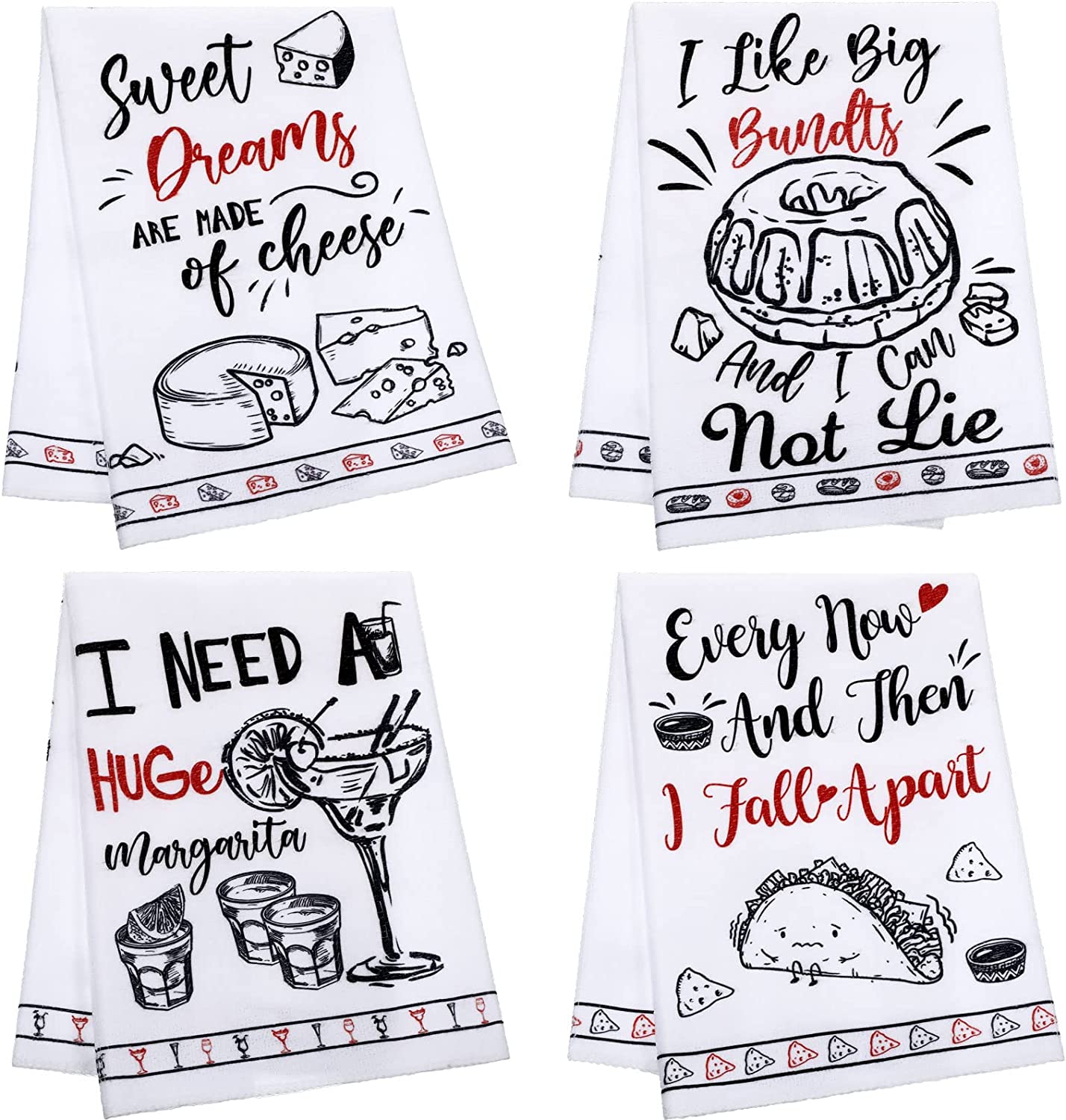 Reliable Material: the 4 fun dish towels are made of polyester that won’t scratch your delicate cookware, plates, pots or pans, they’re highly absorbent, have seamed edges and are machine washable; With a lovely print on top, it’s suitable to be served as a kitchen and housewarming gift