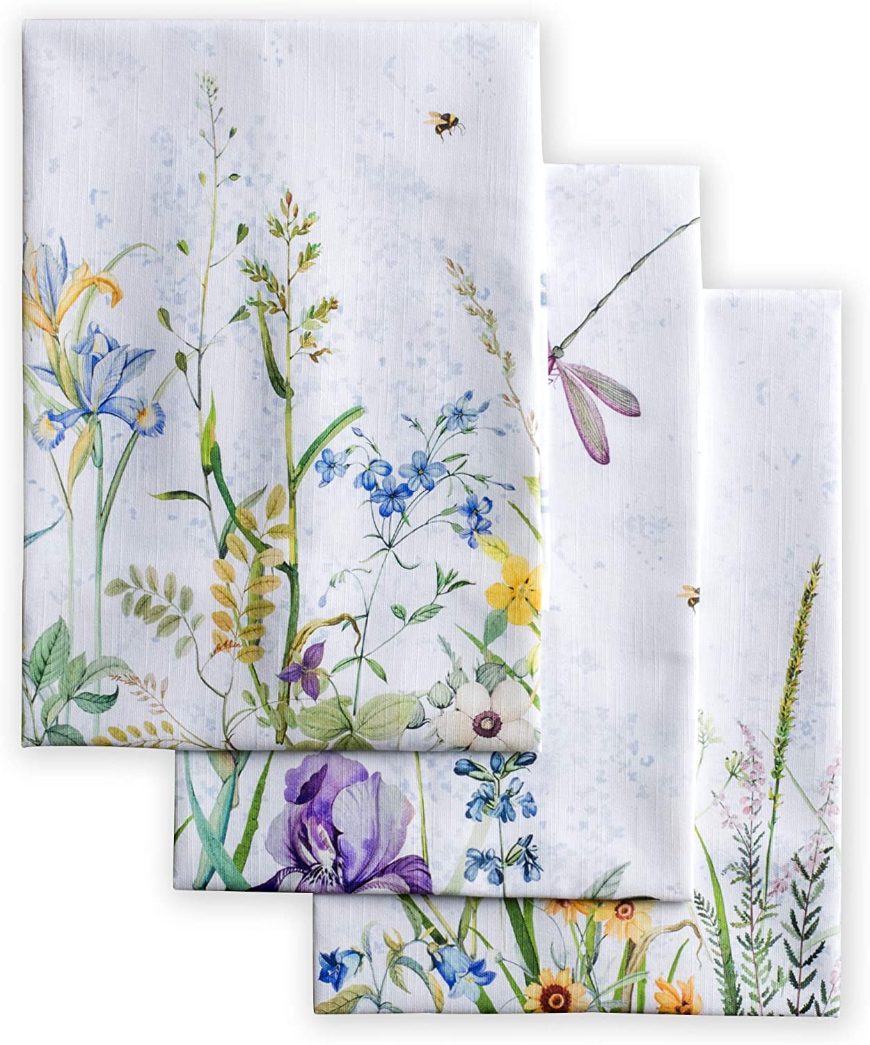 - DECORATIVE AND FUNCTIONAL: These kitchen towels are a fun addition to your kitchen décor and practical for cleaning silverware, plates, pots or pans, and keeping surfaces clean and tidy. Featuring a detailed illustration of wildflowers revelling in the company of nectar-thirsty insects, these towels with their bold-and-bright color scheme will surely brighten up your space and make drying dishes appear less tedious.