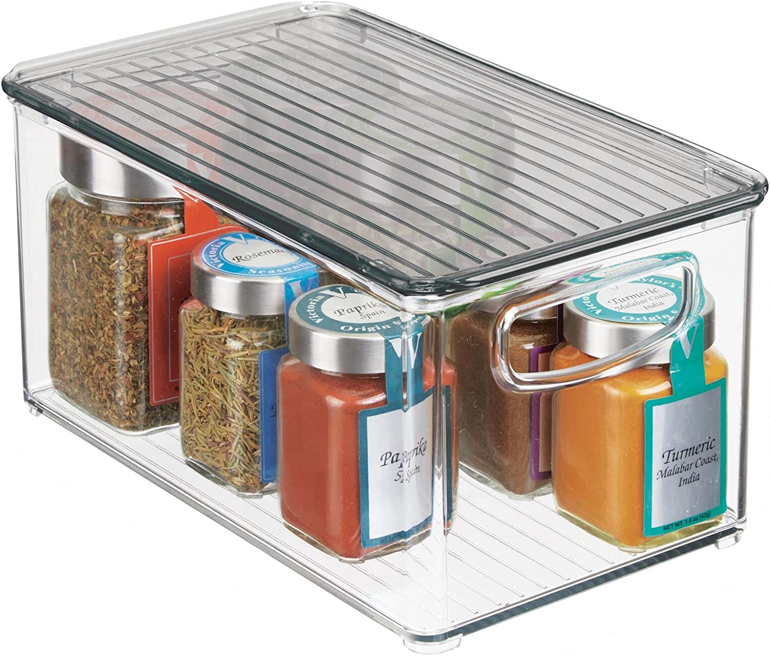 - PORTABLE & LID: Built-in, easy-grip side handles make it easy to transport from shelf to table or island; Organize all of your kitchen essentials and create handy go-to supply baskets to make organizing and everyday living a little easier; The integrated feet keep these containers secure when stacked; Removable lids keep contents protected and dust-free; Store kitchen essentials: towels, candles, baking supplies, straws, and skewers; Great for busy families and professional organizers