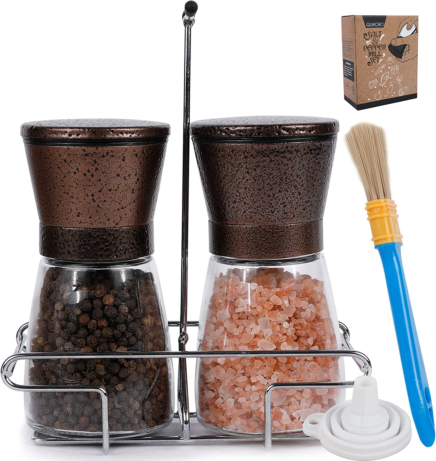 - ✔Wider Practicality : This adjustable grinder with stand salt and pepper grinder kit is made of ceramic, which has a better grinding effect and is more durable. In this set, there is a free funnel and cleaning brush to ensure that you have a better experience when using this set