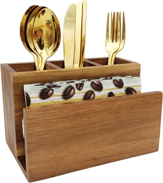 - ► A MUST HAVE ORGANIZER FOR YOUR KITCHEN – This handy Country-Style utensil storage organizer has 4 separate compartments to keep your kitchen utensils neatly in place. Use it for Knives, Spatulas, Tongs, Whisks, Ladles, Skimmers, Peelers, Bottle Openers, Silverware or any other kitchen gadget you want to keep within your arms’ reach! And place napkins or other condiments in the large tray compartment.